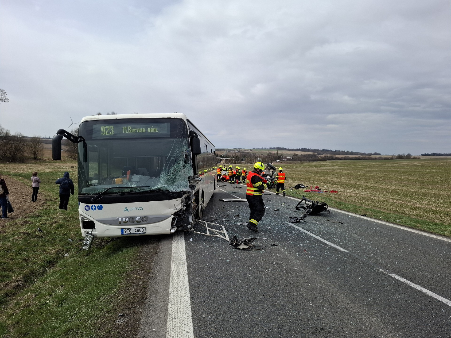 Zranění utrpěli také další lidé. „Pomoc jsme poskytli i dalšímu pasažérovi z osobního auta a třem zraněným osobám z autobusu, v němž cestovalo asi 10 osob,“ uvedla mluvčí hasičů.