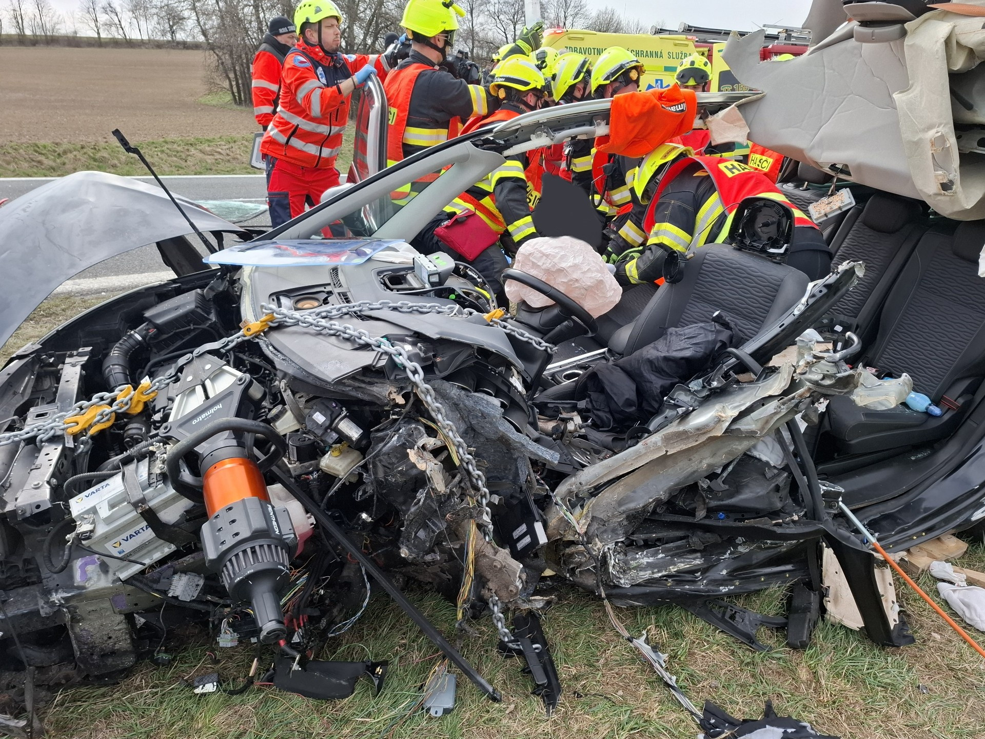 Záchrana ženy byla podle hasičů technicky velmi náročná. „Kvůli nepříznivě deformovaným zónám jsme museli využít rozpínáky, nůžky, řetězy i hydraulické válce a pracovat rychle. Po odstranění dveří i střechy jsme řidičku na páteřní desce předali záchranářům. Asistovali jsme jim při transportu do vrtulníku,“ doplnila Balážová.
